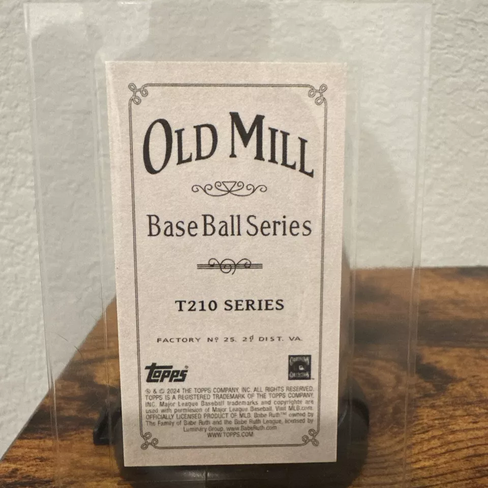 A 2024 Topps Old Mill 1910 T210 Babe Ruth Red Sox card featuring a mini parallel/variety. This sports trading card is ungraded and in near mint or better condition. It is part of the MLB league and manufactured by Topps. The card number is T210 and it portrays Babe Ruth during his time with the Red Sox in 1910. It is a valuable collectible for baseball fans.