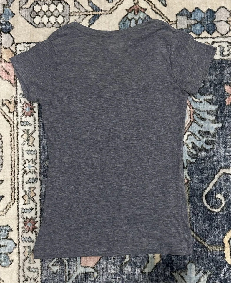 The product is a women’s gray shirt featuring a short cap sleeve design with a V-neck collar, and is officially licensed by the National Football League (NFL). The shirt is in size medium and is perfect for fans of J.J. Watt and the Houston Texans to wear any season.