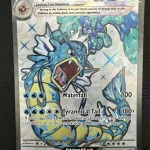 Gyarados from the Scarlet & Violet set. It is an Ultra Rare Full Art card with a holographic finish, manufactured by Nintendo in 2023. The card has 300 HP and is in the Water attribute. It is in English and illustrated by 5ban Graphics, suitable for ages 6 and up. The card is a Stage 1 Pokémon with card number 225/198.